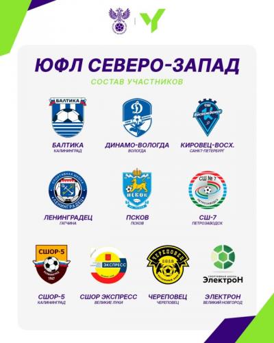 Участниками нового сезона ЮФЛ Северо-Запад станут 10 команд из семи регионов.