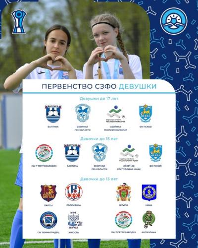 Девочки до 15 лет «Балтика» (Калининград), СШ № 7 (Петрозаводск), Сборная Ленинградской области, Сборная Республики Коми, ФК «Псков».